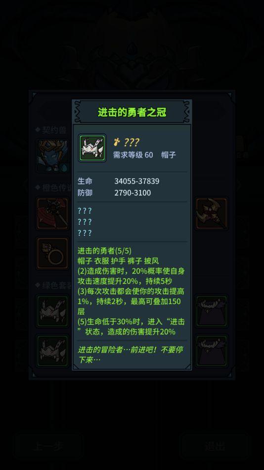 先是勇3,只有套装是我们需要的,还是老样子用3+2的方式搭配,在这我推荐各位刷出3件进击套,仔细看这个叠攻击的buff,打boss如果没有控制,真的是不要太厉害。。。后续会继续讲到。