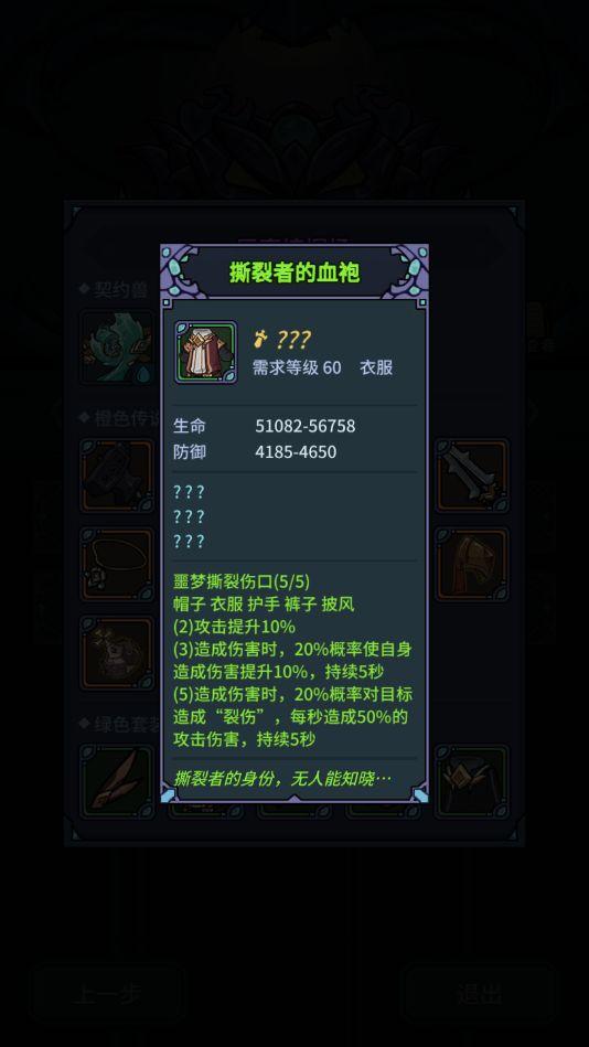 PS:进击套是必备套装,撕裂套可随缘出,毕竟噩3boss也要打一阵,总会爆的。