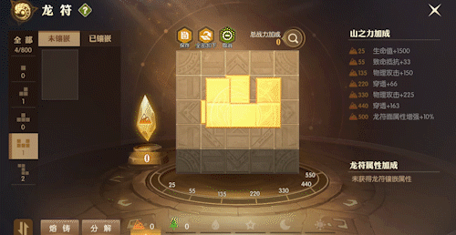 值得一提的是,龙符块共有五种不同的形状、不同的元素之力和随机属性。并且所有镶嵌在元素面上的龙符块都是可以旋转移动的。
