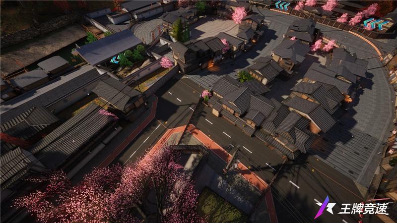 盛开的樱花树被种植在错落有致的建筑旁,为这座安静古朴的小镇增添了许多浪漫,主干道旁也栽满了樱花树,车手们行驶其中,连引擎的轰鸣声似乎都变得更为柔和。