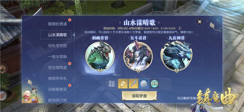 领完奖励,别忘了再移贵步,去中州大地看看绝美春色。然而总有魔族不愿人类欢庆,总想着要搞点事。所以天命者们也别忘了找到十方天君领取罗盘,踏春寻春之路上顺便查探魔族气息、击退它们,也能收获价值不菲的奖励。