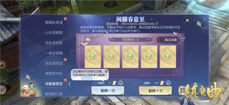 “瑰宝品纳轩”里,全新挂饰、坐骑、万象、光韵、头像框、聊天框、步尘等应有尽有;“闲翻春意至”中,天命者们可以尽情翻牌、收获不同的惊喜豪礼,还能参与排行榜、赢外额外奖励!此外,更有“锦绣芳华礼”“莲绽星海阁”“月满山河礼”等多个返利活动同步开启,让你清明节里嗨个痛快!