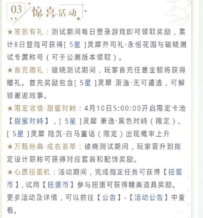 《光与夜之恋》破晓测试4月7日开启,蓝星在此为大家介绍本次测试的开放内容、活动内容等相关信息。