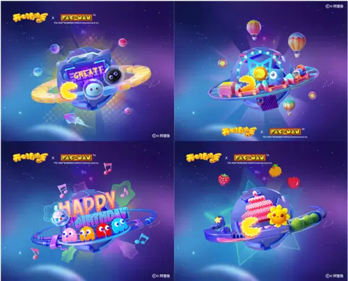 本次联动活动的海报也趣味非常,玩家们可一通过这四海报串联出一个完整的小故事:幽灵们携带蛋糕窜逃,小动物则在后方追逐抢糕大盗;小动物们来到了街机风格十足的吃豆人的星球;小动物和吃豆人携手闯关,打败幽灵夺回蛋糕;小动物与吃豆人共同庆祝生日趴。趣味剧情与游戏元素巧妙贴合,浓厚的生日氛围让玩家乐在其中!