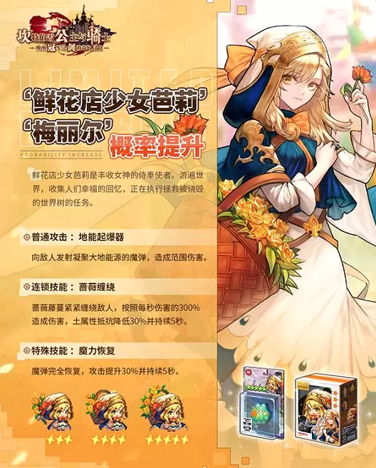 2) 本次更新后,开启【鲜花店少女芭莉】召唤概率限时提升活动。在对应活动卡池进行召唤时,出现概率限时提升!