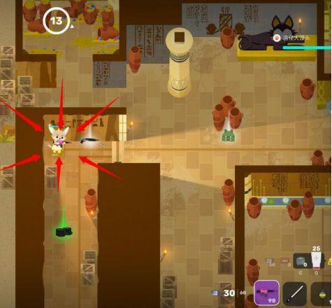 我们进入密室通道沿着去寻找下一个开关,第二个开关就在密室的尽头,我站立的位置(从上面走也可以不过比较远)