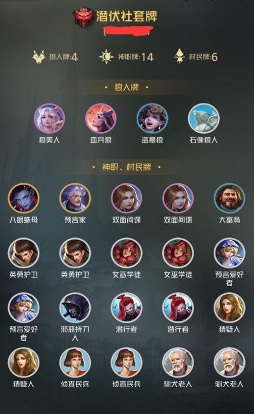 ②神职牌中选择了实用的传说卡预言家以及可以转变势力技能的特有传说卡八眼蛛母,以及势力中优秀的双面间谍、潜行者等等;女巫学徒和双面间谍的组合可以使我方在一个白天回合内令对方暴露两张卡牌并额外探查一张,再加之势力技能以及其它探查卡牌的协助,八眼蛛母即可快速触发技能使我方势力技能变为曝光,为我方胜利奠定坚实基础!