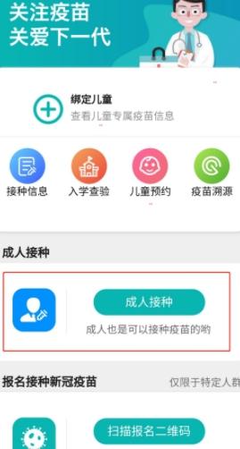 1、打开app,在首页找到“成人接种”