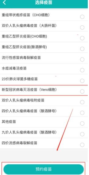 3、找到新冠疫苗,点击“预约疫苗”