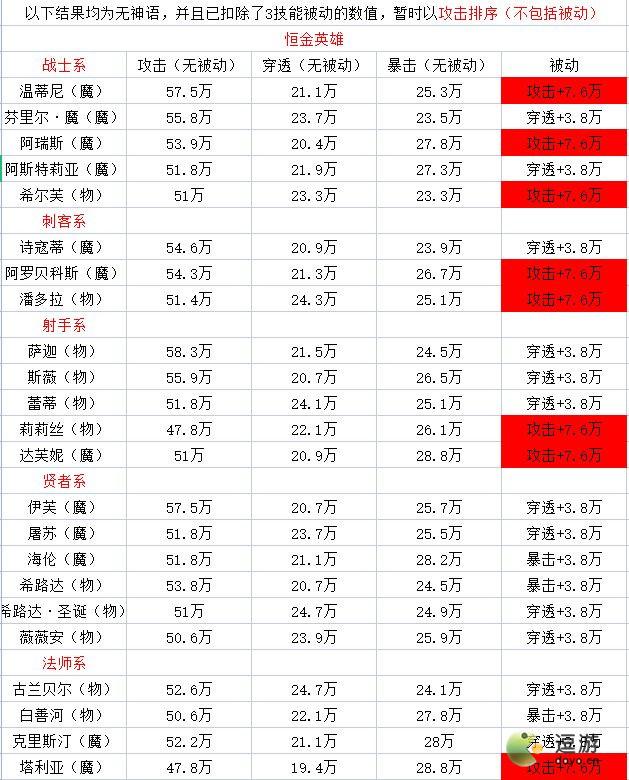 我们在选择助战英雄的时候,尽量优先选择3技能被动为加攻击的角色,此次排名也以攻击属性排名为主。
