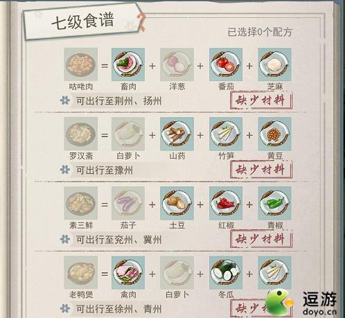江湖悠悠7级食谱配方分享