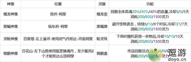 灵历十八年神像位置及功能一览