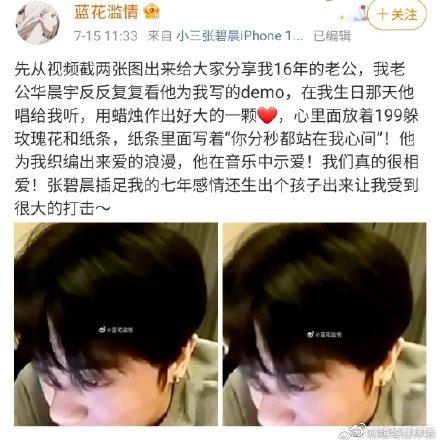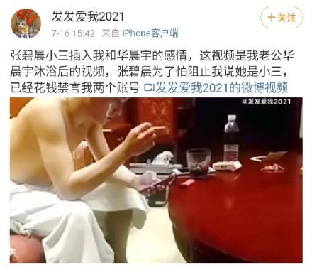 有一位id名为“发发爱我2021 ”的网络用户发出多段疑似华晨宇的视频,并称华晨宇是自己老公,张碧晨为“小三”插入两人感情。张碧晨为了阻止她曝光此事,还曾花钱禁言该网友两个账号。同时这位网友还发出疑似华晨宇整容前后照片,该照片男子与华晨宇十分相似。