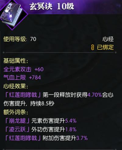 c) 额外词条只会与自身流派相关,研读心经可改变额外词条的数量、种类和数值。心经突破后将100%返还突破前的研读消耗。