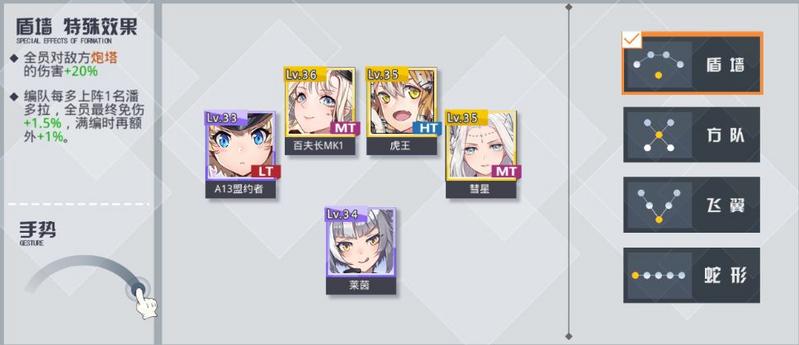 3.盾墙对编队潘多拉的输出增益有大幅加成!除此之外,它还有不错的免伤效果哦~ 盾墙阵型可以为队长提供非常大的保护,极大的提高队长的生存率! 喜欢稳健打法的指挥官们,来试试盾墙阵型吧~
