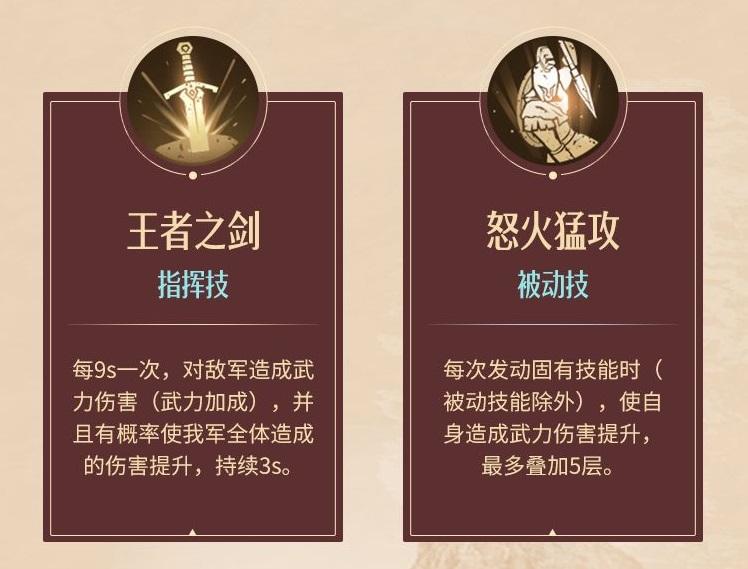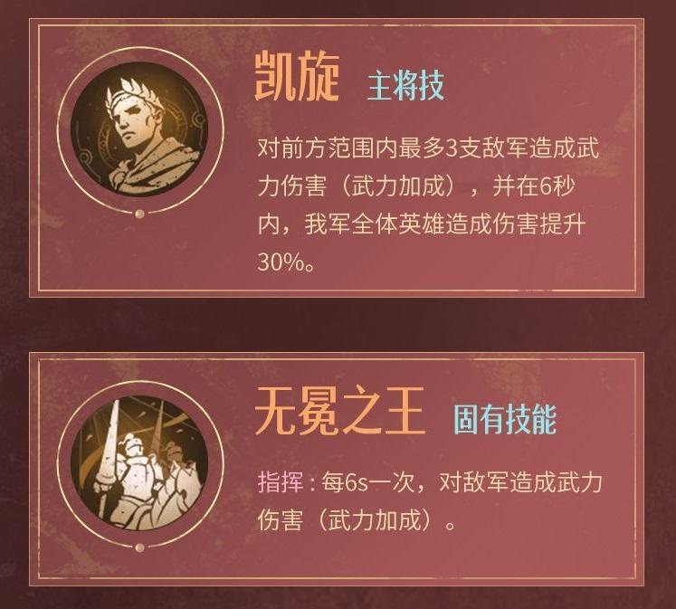 指挥:每6s一次,对敌军造成武力伤害(武力加成)。