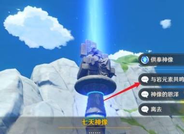 之后,去到神像旁边,并点击右侧的七天神像选项。最后,点击右侧的与“岩元素共鸣”选项,之后风主即可变成岩主。