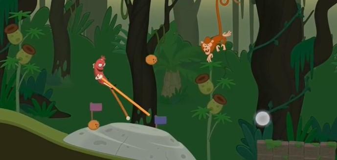 过关技巧:第一段承受住猴子的第一次攻击,保持平衡后趁着空隙走过去;第二段和第三段没什么难度。