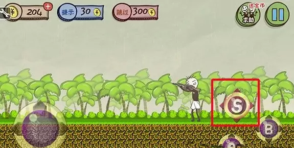 这时候你会看到天空飘来一个S(暂且叫它加强武器吧)。飞吧少年,跳上去吃了它,你就会获得加强武器了。小编提醒,道具只飘过2次,所以要把握住机会哦,对了,记得跳两下才能吃得到。