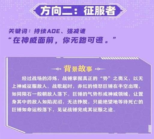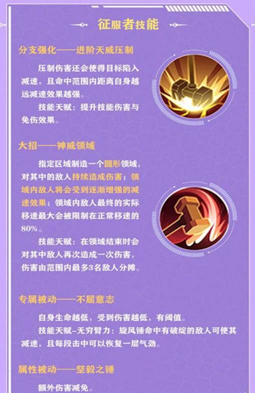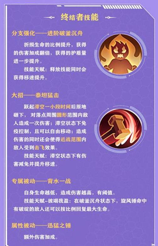 技能天赋:护盾持续期间战锤获得伤害加成,战锤的生命越低,获得的伤害加成就越高,伤害加成有上限。