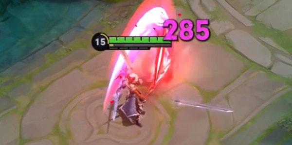 -亚连手持双剑进行攻击,每次平A会造成一次物理、一次魔法伤害,第四次同时造成真伤。