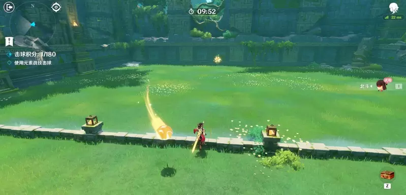 试用角色固定为北斗,战技无CD。长按使用北斗的战技击破飞来的直球即可获得积分,击破变化球可以获得更多积分。注意站在发球器正对面(两个柱子中间的位置)击球,基本可以攻击到发射出的所有球,不用根据球的位置来移动北斗的位置。