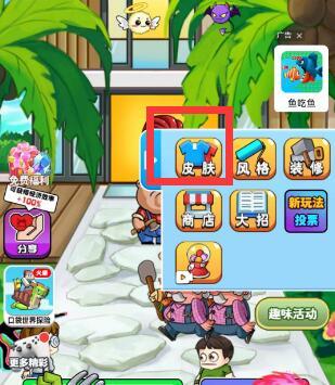 1、进入游戏,点击右边三角,弹出弹窗当中选择皮肤。