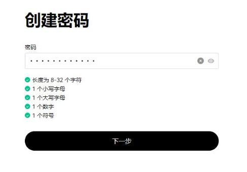 5、设置符合要求的密码,点击【下一步】,即可完成账户创建。