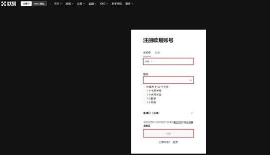 1.打开欧易官网,点击右上角【注册】按钮进入注册页面。