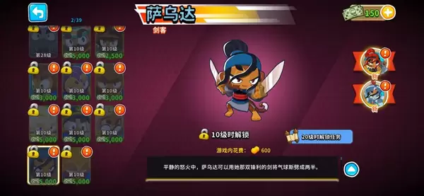 2、同时萨乌达无视迷彩属性,技能又可以击破铅气球,完全不用担心前期被偷家,只需要应对40回合的MOAB就行。