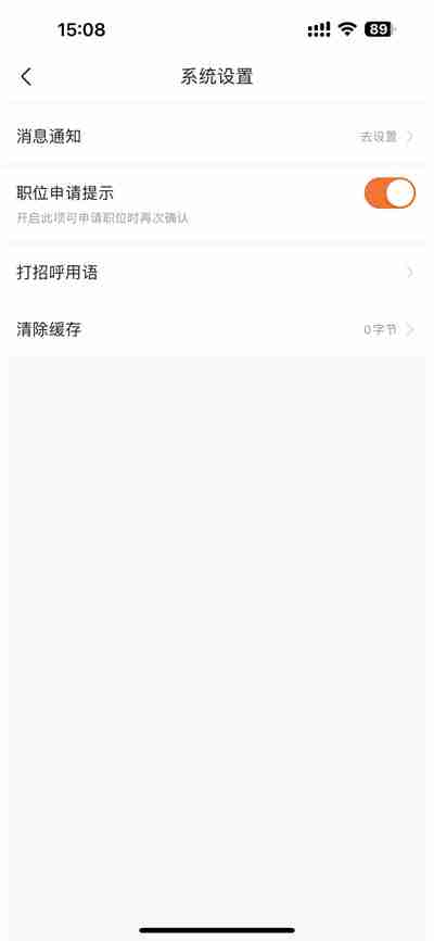 在系统设置页面,找到“职位申请提示”选项,点击右侧的开关将其开启。 开启后,每次投递简历前,系统都会弹出确认提示框,避免您误操作。