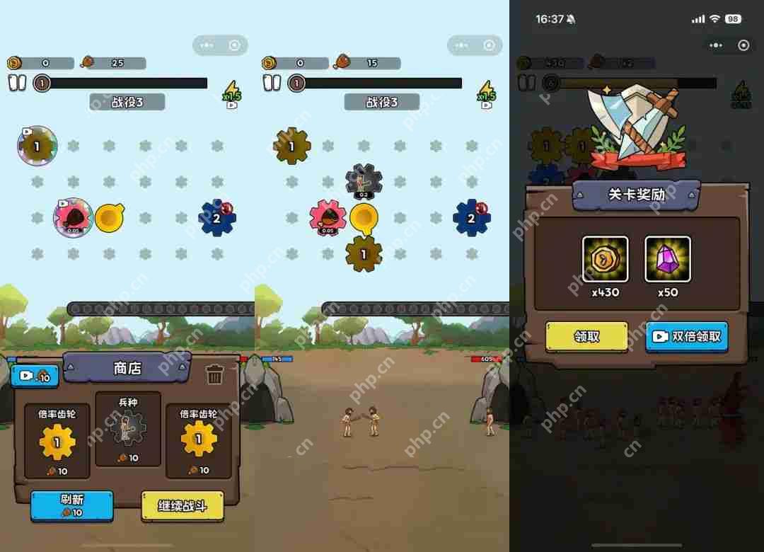 《人类无限进化》的核心玩法是齿轮策略与塔防结合。玩家在一个6x4的棋盘上部署齿轮对抗敌人,需要购买并连接传动、士兵、英雄、道具、辅助五类齿轮,通过合成升级齿轮、加速链提升转速,最终击败敌人。