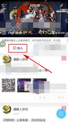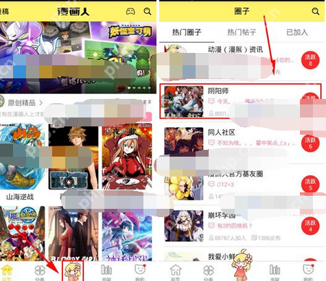 首先,启动漫画人软件,点击【圈子】选项卡,找到您想加入的圈子并点击进入。(如图所示)