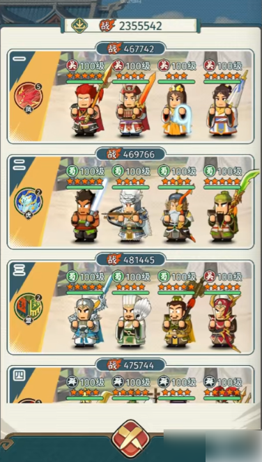 3.五虎队:关羽、马超、黄忠、张飞,援助赵云。爆发高,适合PVP,PVE较弱。
