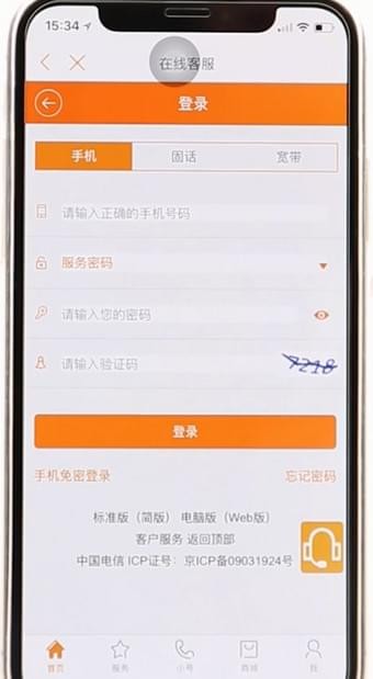 5.输入要查询的手机号码 服务密码 验证码
