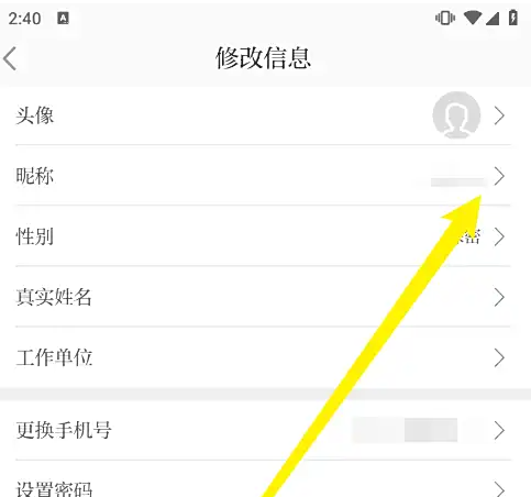 在修改信息界面内,点击‘昵称’