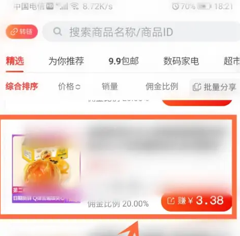 进入首页页面后,点击【选择要分享的商品】进入。如下图所示