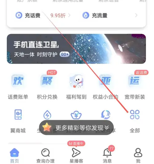 第一步打开中国电信app首页找到【全部】图标,点击进入
