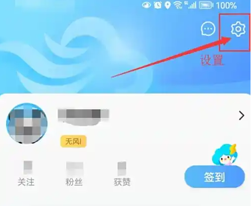 进入“墨迹天气”APP后,点击右上角齿轮图标进入设置,如图所示。