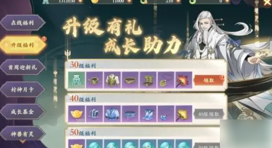 3、升级福利:玩家在达到10、20、30、40等每十级都会解锁对应的奖励。