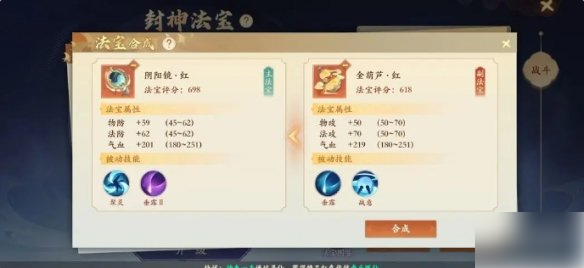 3、注意:玩家在合成时一定要看好主法宝的类型和属性。
