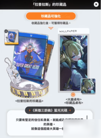 在游戏里,收藏品与珍藏品可被视作角色的第五件装备。玩家有机会获取收藏品箱子,打开后可随机开出各品阶的收藏品。在每个角色页面的左上角,玩家能够赠送一个收藏品,送出的收藏品会自动装备到角色身上。需要特别注意的是,收藏品一旦装备便无法摘除。不过,SR品阶的收藏品在替换R品阶收藏品时,可继承其经验,而被替换掉的R品阶收藏品不会返还,将会直接消失。
