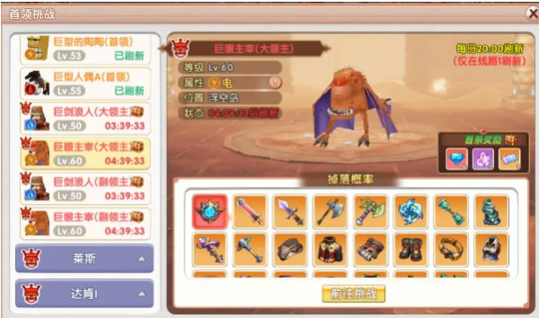 在首领挑战菜单的左边,有首领的刷新时间,我们可以根据首领的刷新时间合理分配刷怪的时间