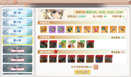 魔物洞窟(幻境迷宫):在进入玩法场景之后,就会直接默认开启全体模式,在这里也会有若干层,每一层的领主和小怪都是有所区别的。玩家一旦将它们全部的击杀完毕,就可以通过邮件来发送,然后去获取每日的上限。