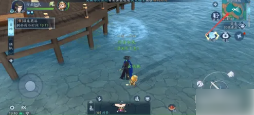 想要返回门派,首先点击页面右上段昆昆角的小地图。