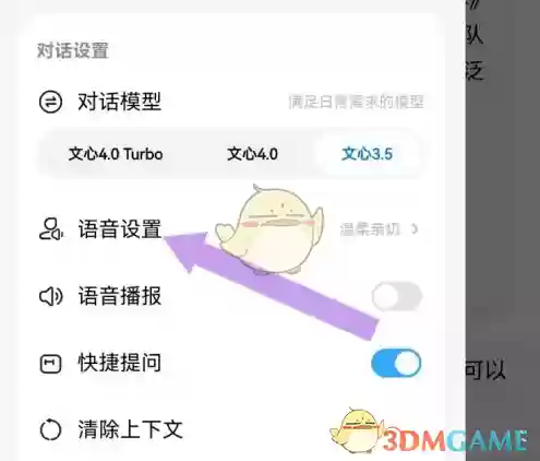 2、打开侧边栏,点击“语音设置”就可以设置了,如截图所示;