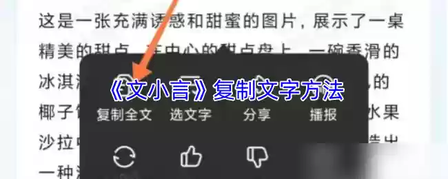 用户可通过打开文小言APP,在对话界面找到需要复制的文字内容,长按选中文字后,在弹出的操作菜单中选择「复制」选项,即可将选中的文字复制到剪贴板。复制后可在其他应用(如备忘录、微信)中长按输入框选择「粘贴」,快速使用复制的内容。