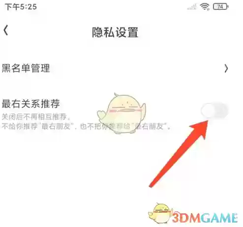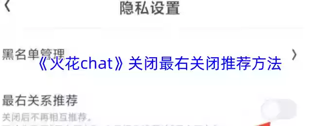进入火花chat「我的」页面点击右上角设置图标,选择「隐私设置」选项,在页面中找到「最右关系推荐」功能,点击其后方的开关按钮选择「关闭」,即可停止接收基于社交关系的推荐内容。关闭后系统将不再根据通讯录、共同好友等数据推送关联用户,提升隐私保护效果。