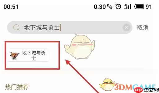 搜索结果页面会显示出《地下城与勇士》的游戏图标。从列表中找到它,并点击进入该游戏的官方主页。