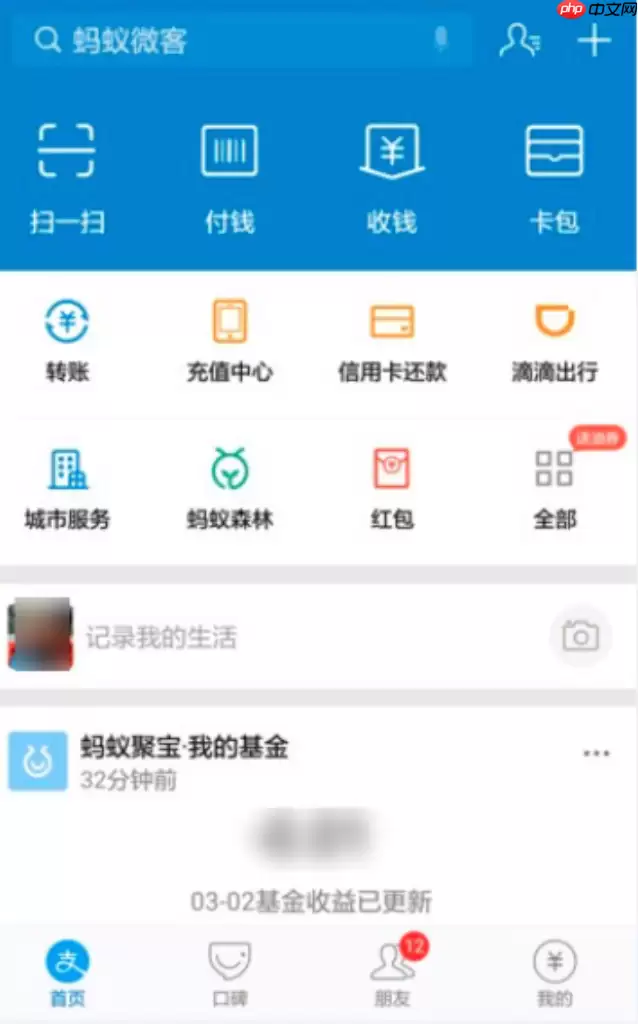 2. 返回支付宝首页,点击“收付款”,然后进入右上角的“...”菜单。